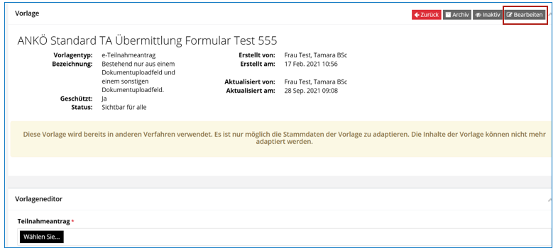 1.2 Bearbeitungsansicht von in Verwendung befindlichen Vorlagen