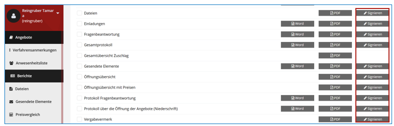 Die eSignierung von pdf-Dateien in der eVergabe ist wieder verfügbar. Bspw. können zu versendende Berichte mittels Amtssignatur unterzeichnet und an die Bieter übermittelt werden.