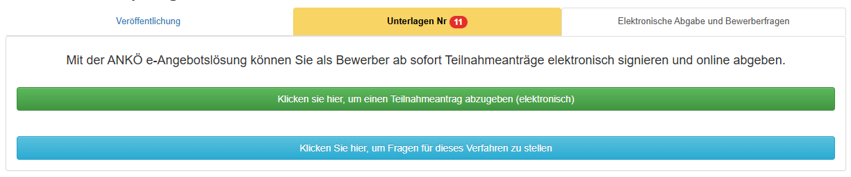 Im Vergabeportal können Sie für alle Ausschreibungen, die über den ANKÖ durchgeführt werden, Ihre Angebote elektronisch einreichen. Erfahren Sie hier, wie Sie dazu vorgehen.