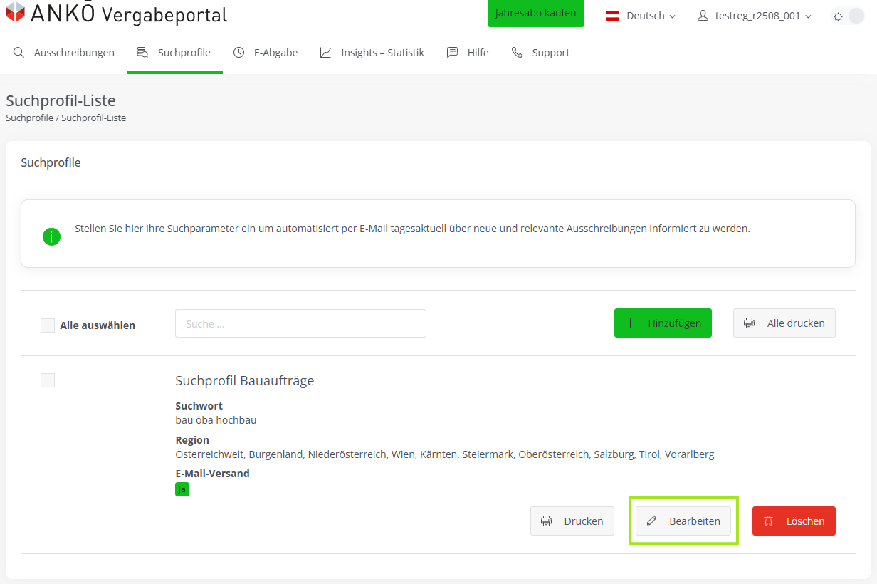 Wie kann ich meine bestehenden Suchprofile bearbeiten?
