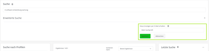 - Mit dem Button “Suchprofil speichern” Ihr Suchprofil erstellen.