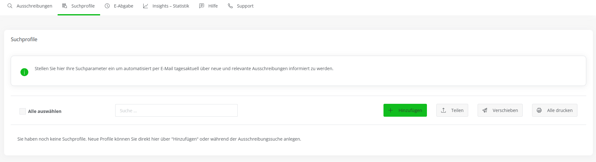 Erstes Suchprofil erstellen und keine Ausschreibung mehr verpassen